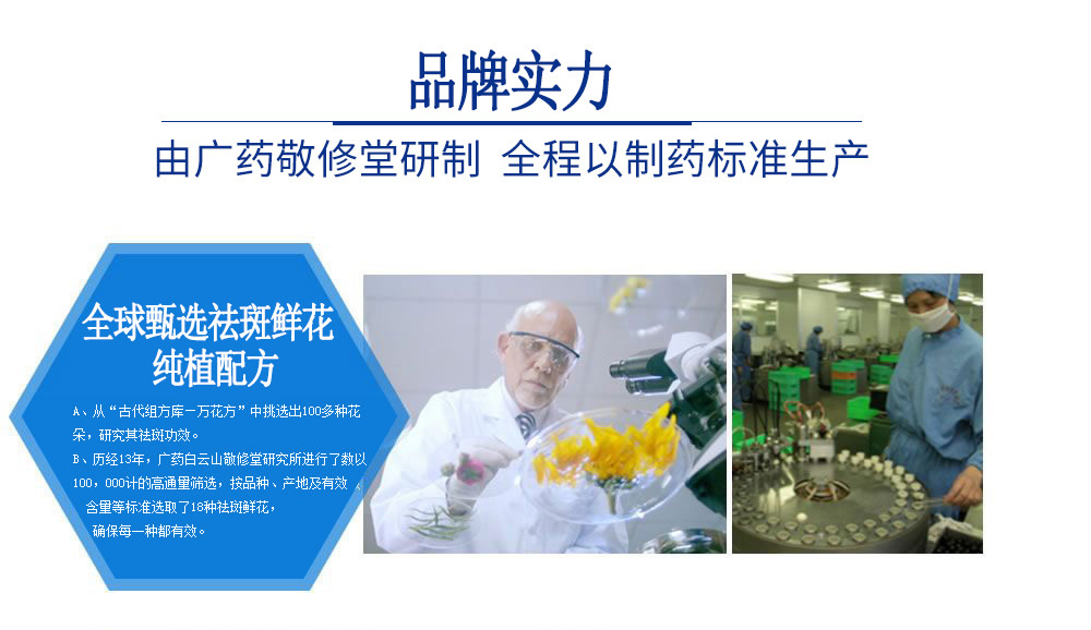 “一顆心全撲在生意上,搞得臉色暗黃,活脫脫的黃臉婆朋友介紹我使用廣藥敬修堂佰花方,幾百種鮮花研制的,無副作用,廣藥敬修堂佰花方大廠家用著放心,一個多月,斑就沒了,讓我更有自信,50歲跟20來歲一樣!”