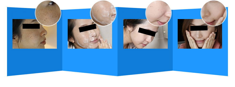 色斑邊緣開始模糊,膚色變得均勻, 皮膚里的臟東西都不見了,肌膚特別 凈透,皮膚白亮了!
