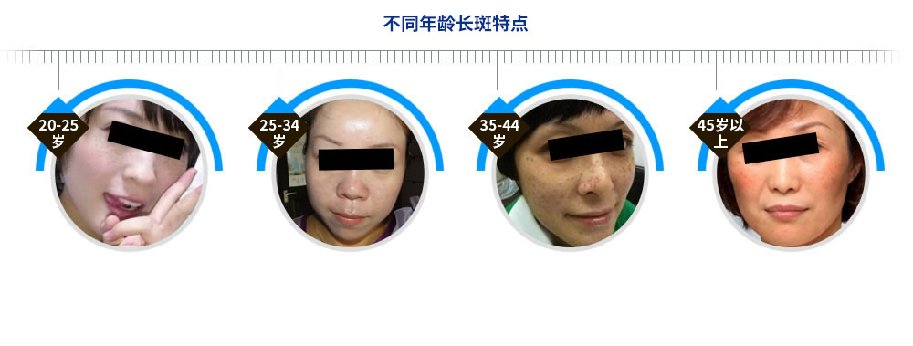 妊娠、曬斑:由后天因素、紫外線原因造成,形成大小不規(guī)則斑點(diǎn);