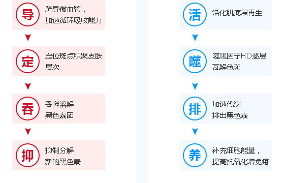 深層滲透皮膚,吞噬分解后的色素團(tuán),并將之排出表皮外。