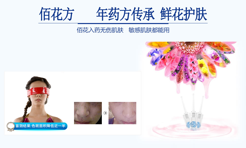傳承廣藥敬修堂佰花方226年中華老字號“鮮花護(hù)膚”的理念,以佰花入藥,無傷肌膚。該方子由數(shù)十種鮮花、植物組成,混合高溫蒸餾其精華成分,卓越的美白效果尤其是淡斑功效比激光淡斑更安全。