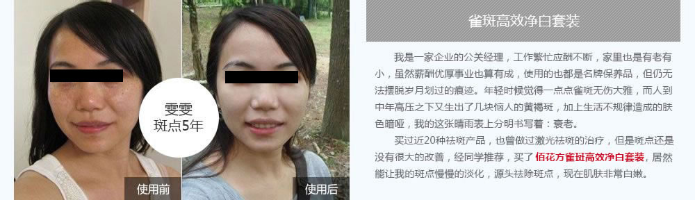 “家里遺傳的雀斑,讓我在愛情中總不如意,都熬成剩女了。后來電視上看到廣藥敬修堂佰花方用花來排毒淡斑的,用了2個月斑就淡了。最近還認(rèn)識了新的男朋友,希望能收獲這段難得的愛情吧!”