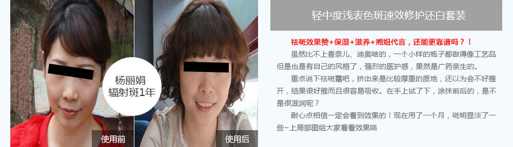 “職業(yè)原因常年在外風(fēng)吹日曬,日曬斑越來越重,過敏性膚質(zhì),選淡斑產(chǎn)品特別謹(jǐn)慎,相信廣藥敬修堂佰花方,制藥集團(tuán)又是鮮花提取的。事實(shí)證明,我可選對了,看我現(xiàn)在的臉,白白凈凈的,自信爆棚!”